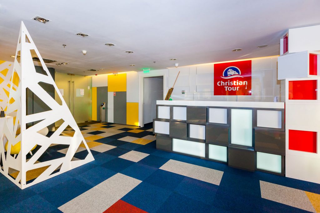 Birourile Christian Tour au suferit un facelift de care aveau nevoie si ne-am bucurat ca noi am fost alegerea pentru aceasta transformare. Echipa este formata din oameni tineri, energici si dornici de rezultate excelente intr-un ambient pe masura. Doar ca spatiul de lucru nu coincidea cu natura echipei si valorile brand-ului, asa ca ne-am asumat misiunea de a transforma niste birouri anoste, inghesuite intr-un spatiu inchis, in niste birouri vesele, colorate, inundate de lumina naturala intr-un spatiu deschis, care sa permita comunicarea intre departamente.