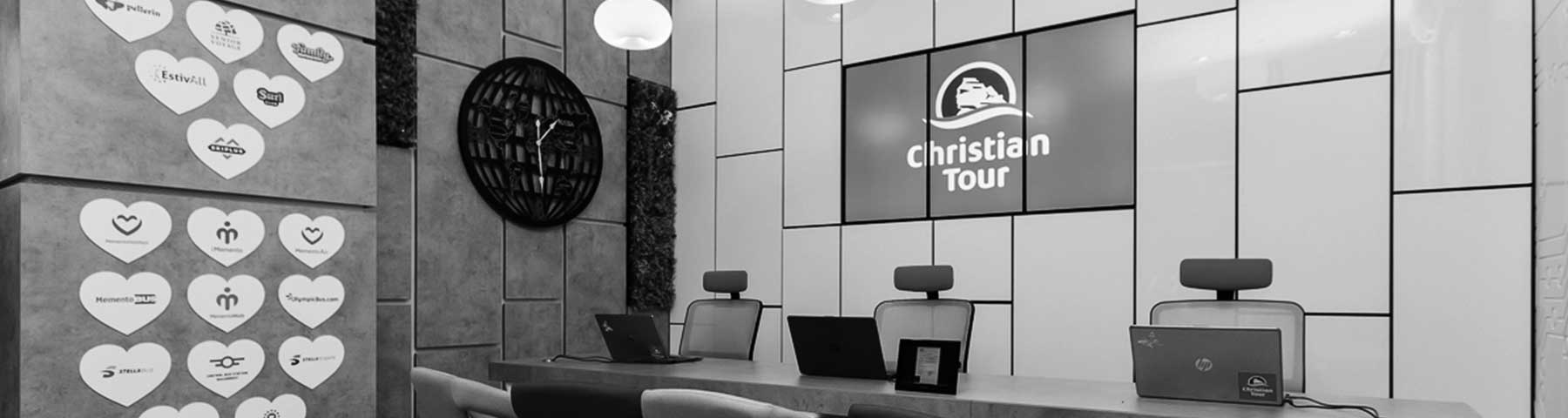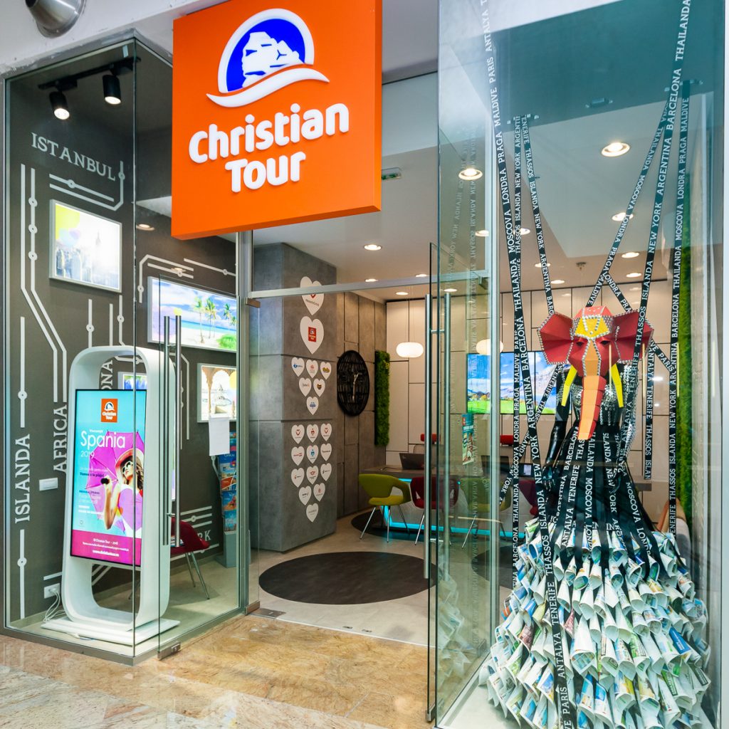 2018 – al cincilea an de cand Christian Tour are incredere in serviciile Deadline Construct. Christian Tour si-a schimbat locatia in incinta Mall Baneasa, migrand de la un sediu tip insula, la unul standard. Design-ul sediului din noua locatie a fost gandit in ton cu noile tendinte in materie de moda, in acest sens plasand in vitrina un manechin non-conformist, adaptat la tema clientului: turismul.