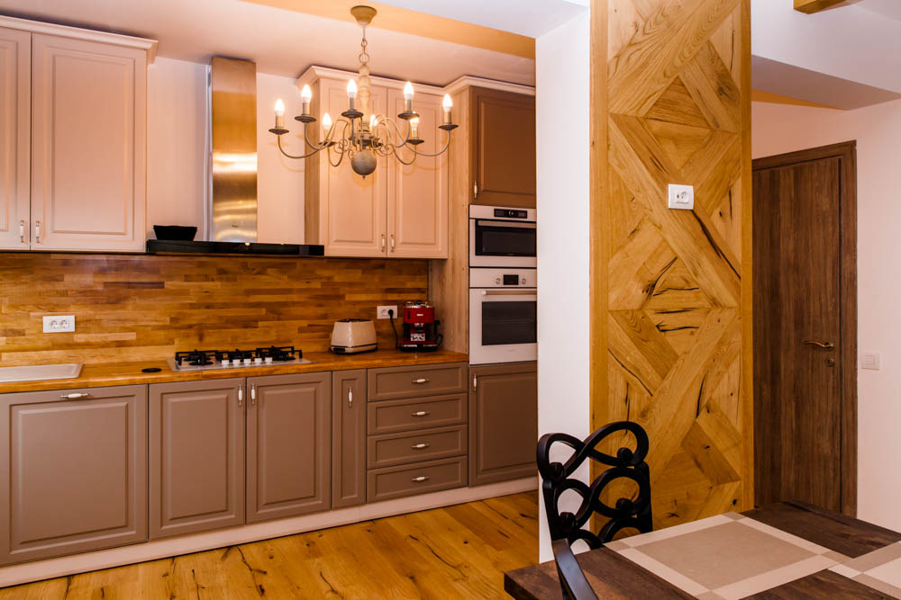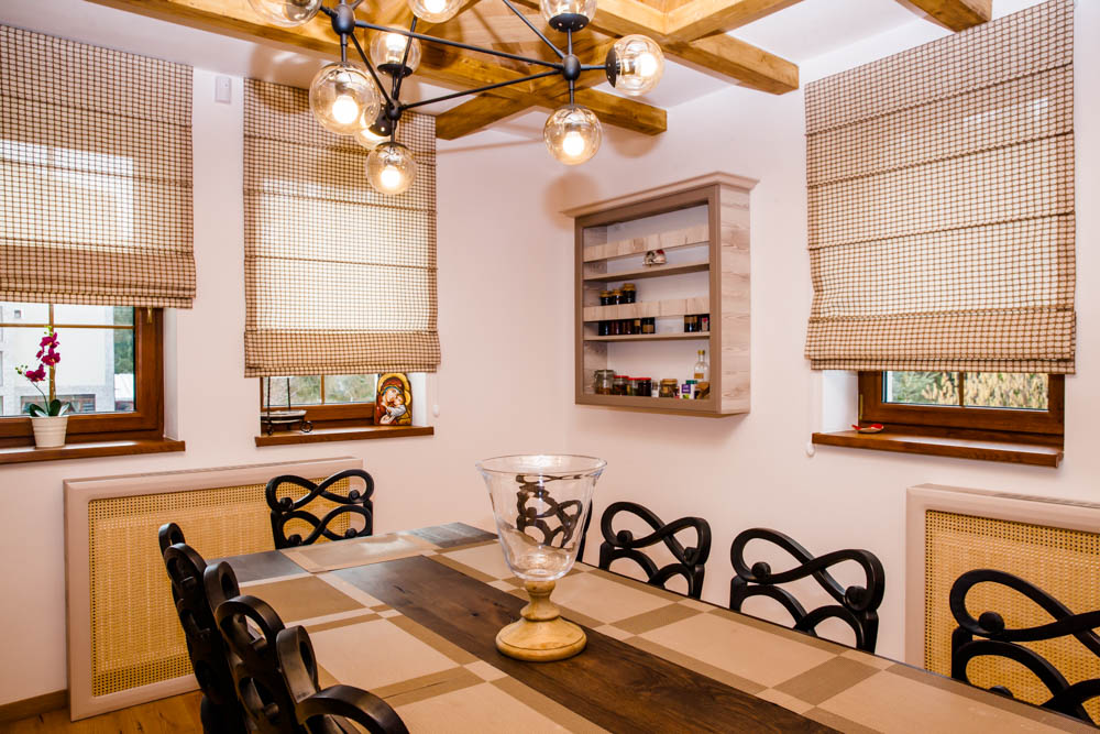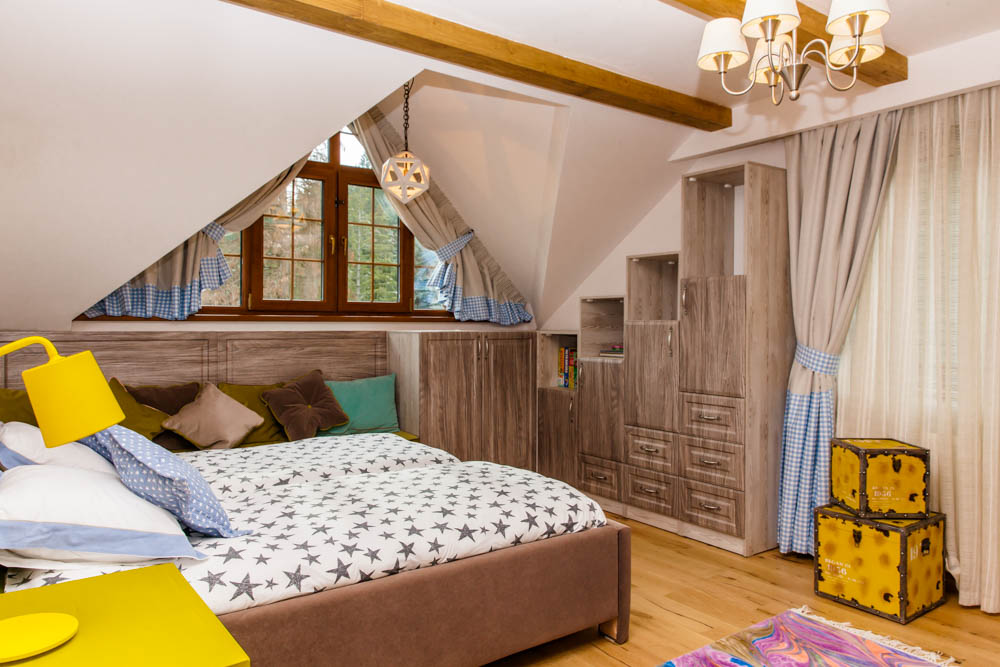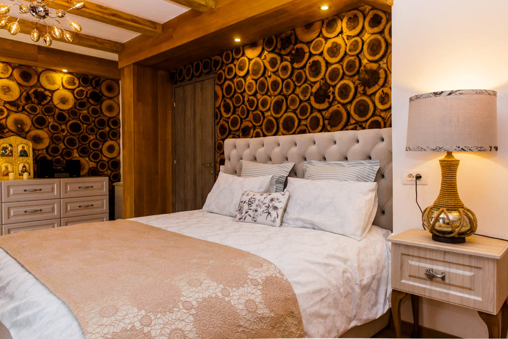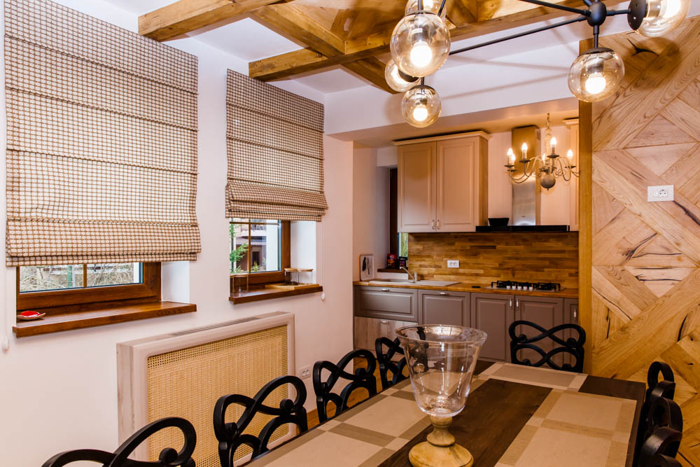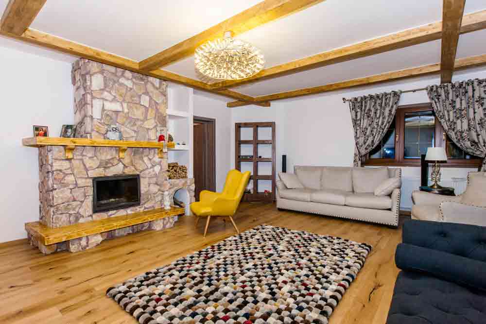 Am folosit lemnul din abundenta acolo unde am considerat ca este necesar si am creat iluzia unor spatii lemnoase acolo unde nu puteam folosi lemnul cu adevarat. Am adaugat piatra pentru seminee si multe elemente care au legatura cu zona montana, pentru decor.